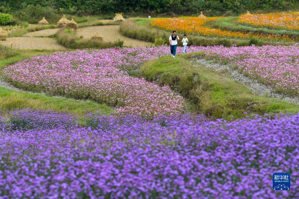 10月6日,游客在貴州省貴陽(yáng)市花溪區黔陶鄉谷灑農業(yè)綜合種植基地賞花。