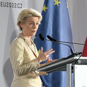 10月7日,在捷克首都布拉格,歐盟委員會(huì )主席馮德萊恩出席歐盟領(lǐng)導人非正式會(huì )議的會(huì )后聯(lián)合新聞發(fā)布會(huì )。