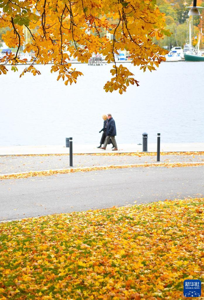10月7日,兩名行人走在瑞典斯德哥爾摩街頭。