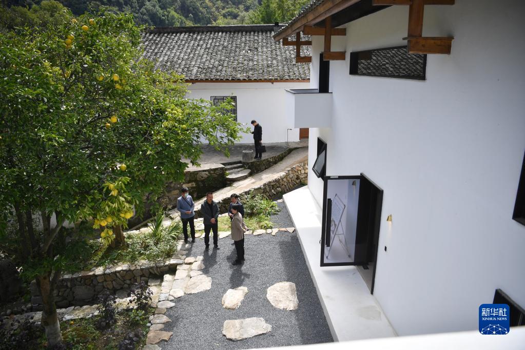 游客在位于秦嶺南麓的陜西寧陜縣漁灣村一處民宿院落內活動(dòng)(10月10日攝)。