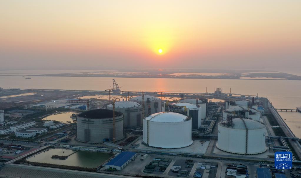 10月19日拍攝的建設中的中石化天津液化天然氣(LNG)接收站(無(wú)人機照片)。