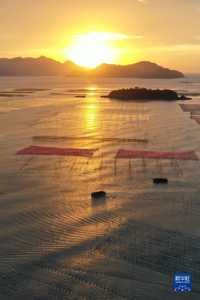 金秋時(shí)節,福建省海洋養殖大縣霞浦縣海域上一派繁忙的秋收景象。每天的早晨和傍晚是漁民出海勞作、歸港返家的繁忙時(shí)段,漁船在廣闊的海洋牧場(chǎng)里穿行游弋,收獲紫菜、生蠔等水產(chǎn)品,描繪出一幅幅美麗的大海漁耕圖。