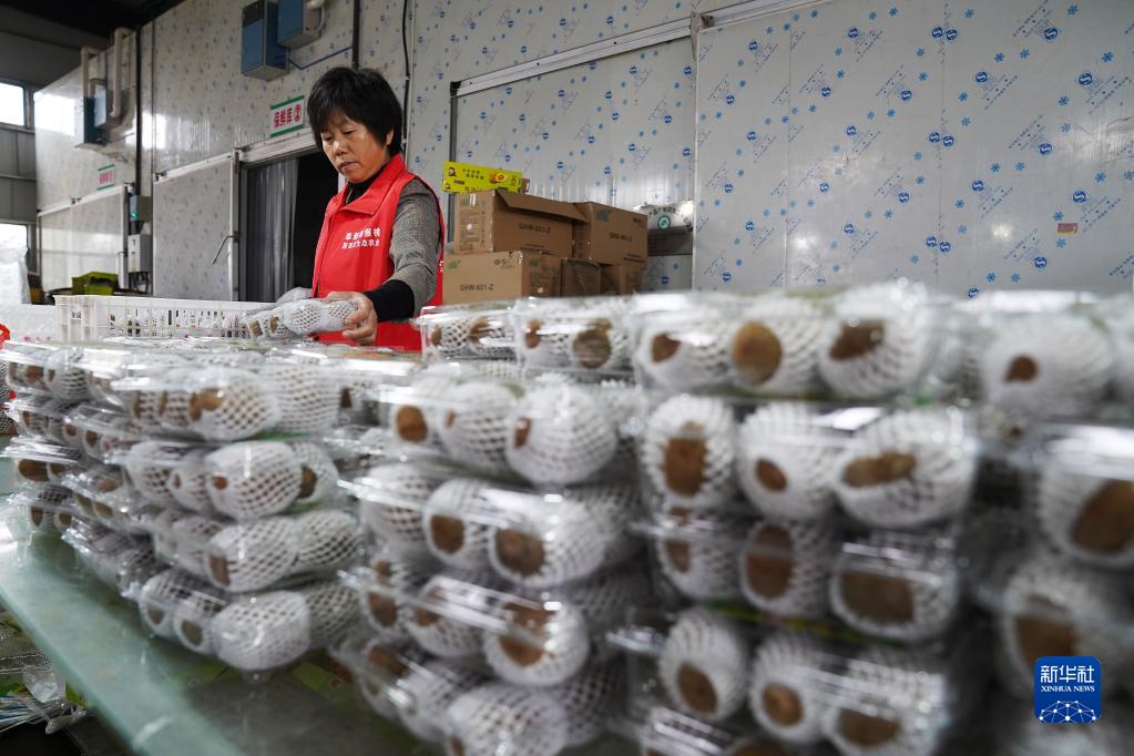 10月27日,在奉新縣赤岸鎮城下村,果農在包裝獼猴桃。