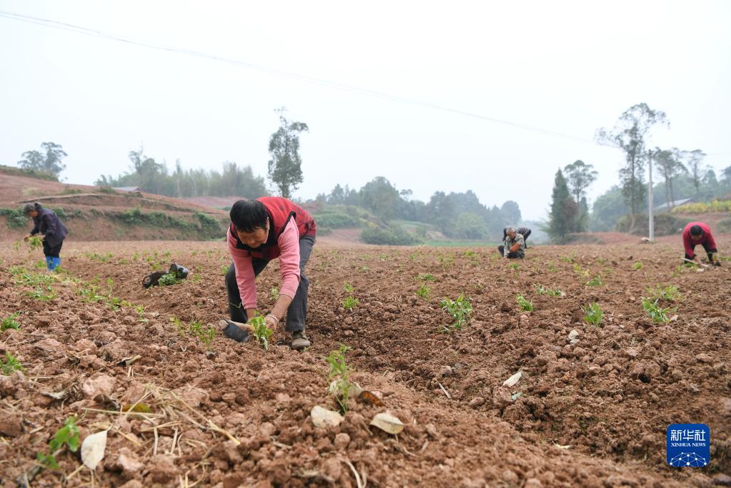 10月27日,在重慶大足區玉龍鎮清源村,村民在中藥材種植基地栽種百部。