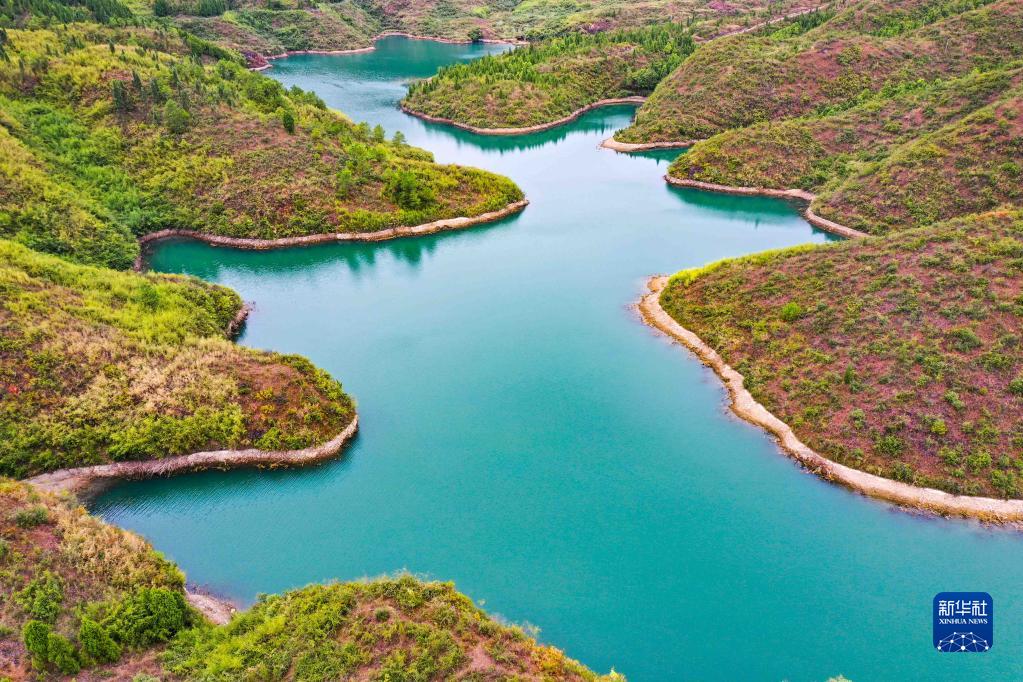 這是10月10日在貴州省銅仁市玉屏侗族自治縣白巖河水庫拍攝的秋景(無(wú)人機照片)。