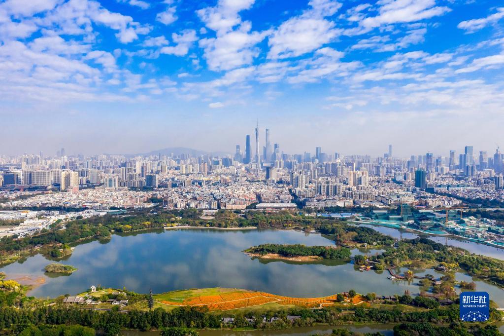 這是2020年2月24日拍攝的廣州海珠濕地海珠湖(無(wú)人機照片)。