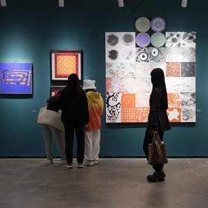 10月30日,參觀(guān)者在北京服裝學(xué)院觀(guān)看美術(shù)作品展。