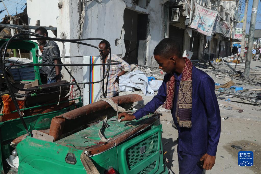 10月30日,在索馬里首都摩加迪沙,當地居民查看爆炸現場(chǎng)。