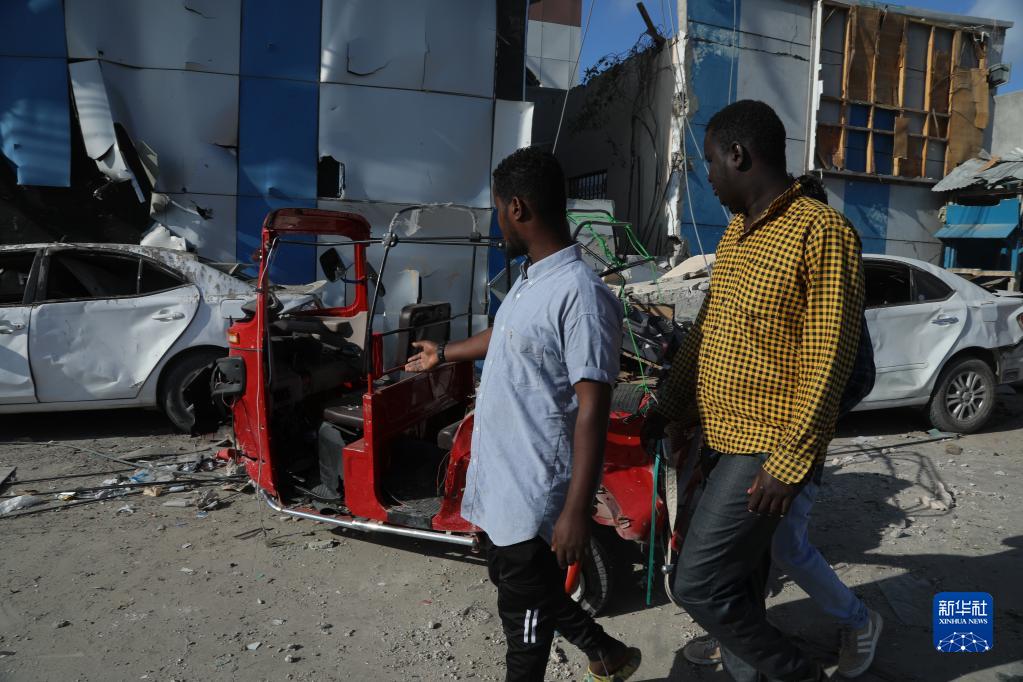 10月30日,在索馬里首都摩加迪沙,當地居民查看爆炸現場(chǎng)。