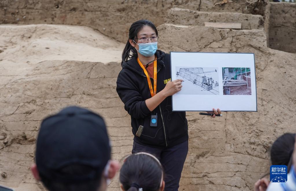 10月30日,琉璃河遺址考古發(fā)掘現場(chǎng)負責人王晶向活動(dòng)參與者介紹夯土結構。