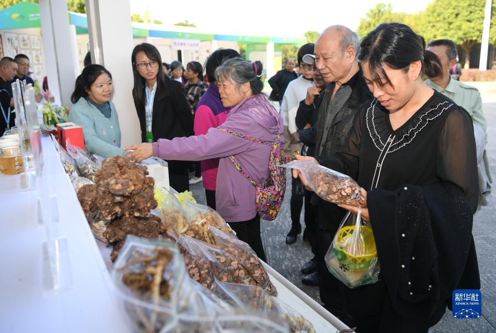 10月31日,參觀(guān)者在博覽會(huì )上了解、選購中藥材。