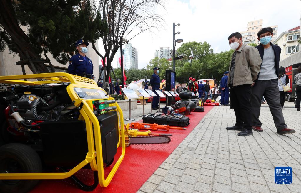 10月31日,市民在一組消防救援設備展示攤位前駐足觀(guān)看。
