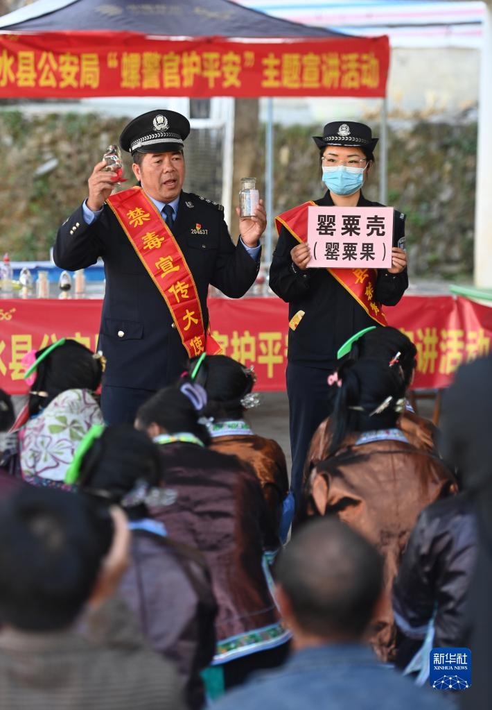 當日,廣西柳州市融水苗族自治縣禁毒辦、公安局在該縣桿洞鄉錦洞村開(kāi)展禁毒教育活動(dòng),通過(guò)講解禁毒知識等方式,幫助群眾識別毒品,了解毒品危害,增強禁毒意識。