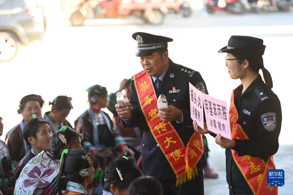 當日,廣西柳州市融水苗族自治縣禁毒辦、公安局在該縣桿洞鄉錦洞村開(kāi)展禁毒教育活動(dòng),通過(guò)講解禁毒知識等方式,幫助群眾識別毒品,了解毒品危害,增強禁毒意識。
