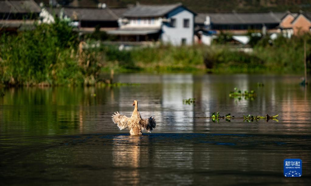 鴨子在西湖國家濕地公園嬉戲(10月27日攝)。