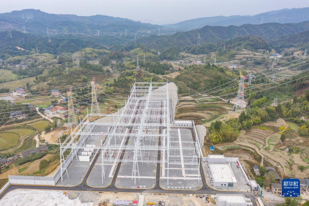 這是11月4日拍攝的正式投運的重慶發(fā)電廠(chǎng)環(huán)保遷建500千伏送出工程(無(wú)人機照片)。