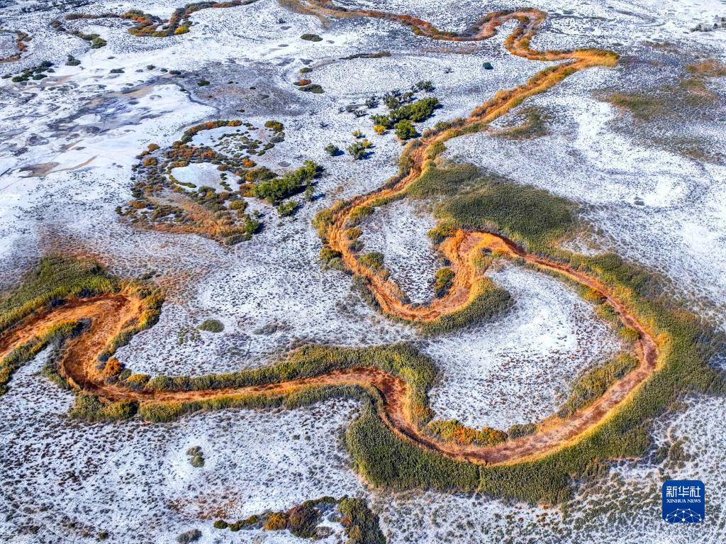 新疆艾比湖濕地國家級自然保護區秋景(2022年10月5日攝,無(wú)人機照片)。