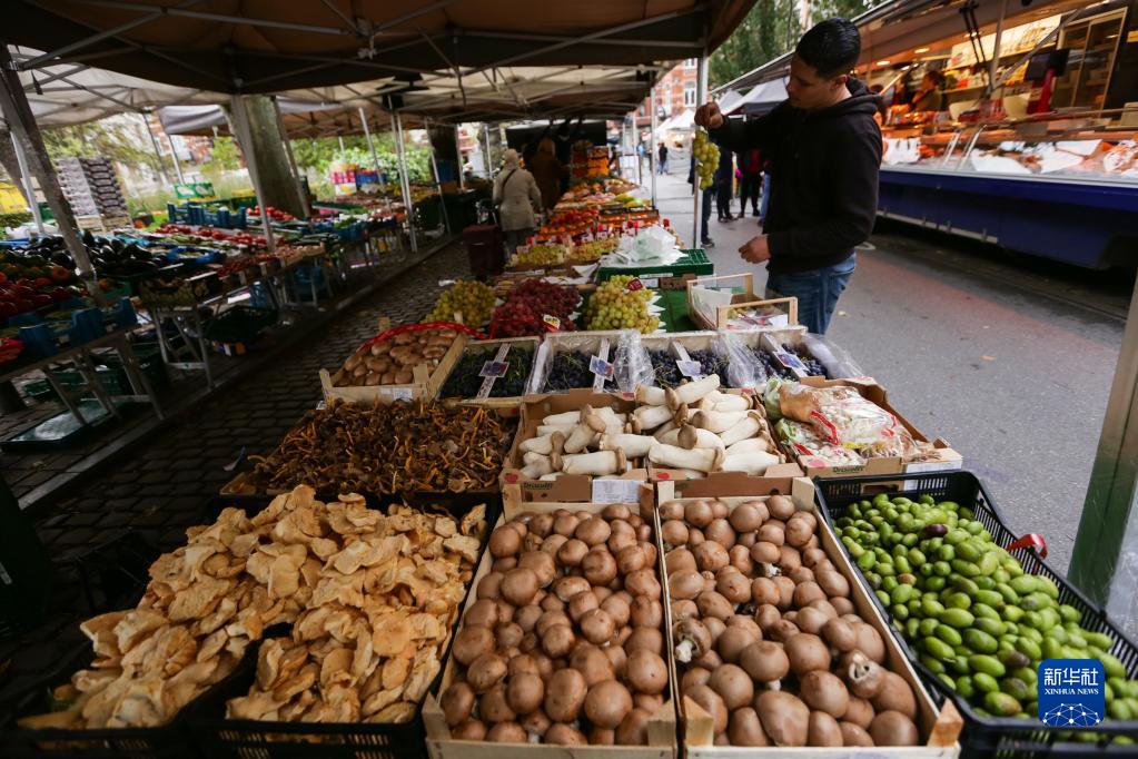 11月4日,在比利時(shí)布魯塞爾一市場(chǎng),商販準備商品。