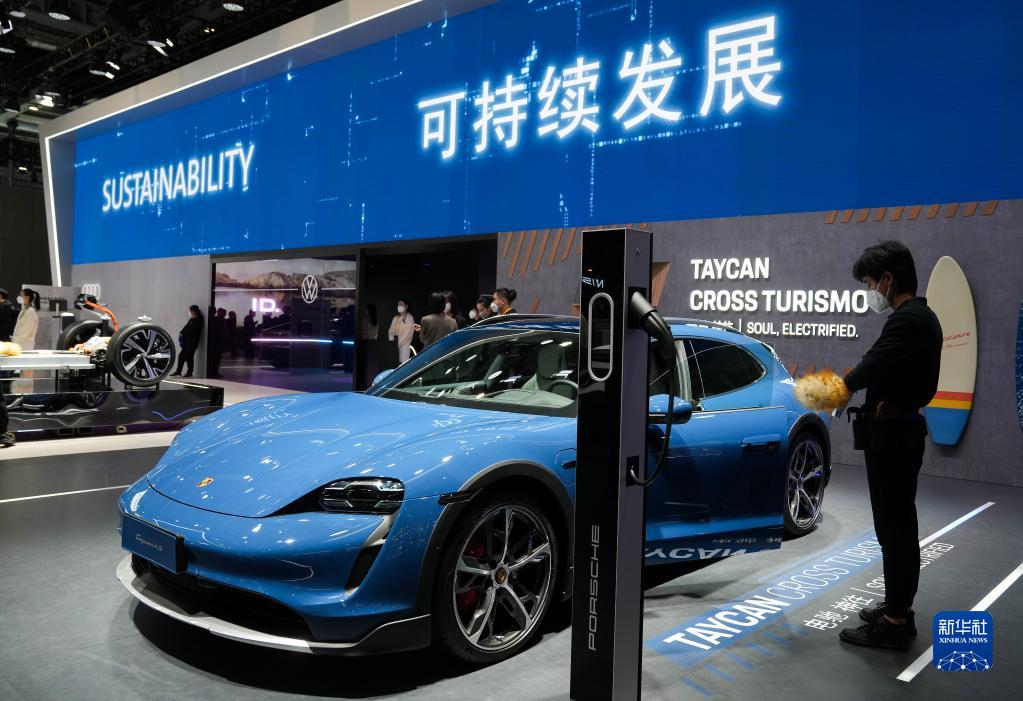 11月6日在第五屆進(jìn)博會(huì )汽車(chē)展區拍攝的保時(shí)捷新能源汽車(chē)。