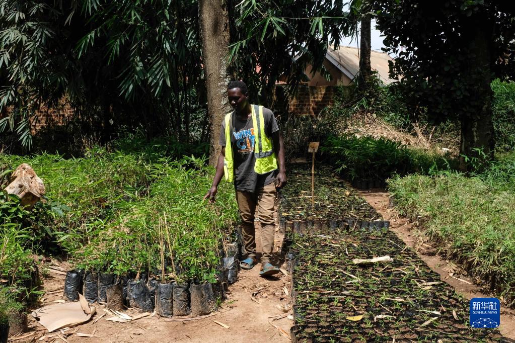 10月26日,在烏干達首都坎帕拉,烏干達竹子協(xié)會(huì )的工作人員走在竹園中。