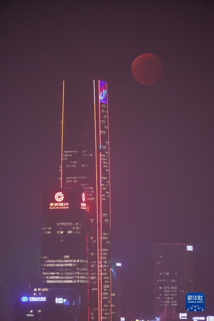 這是11月8日在貴陽(yáng)市拍攝的月食(多重曝光拍攝)。