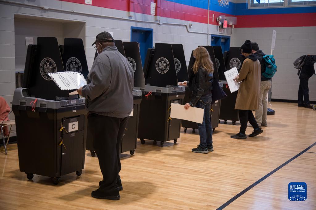 11月8日,選民在美國紐約的一處投票站參加中期選舉投票。