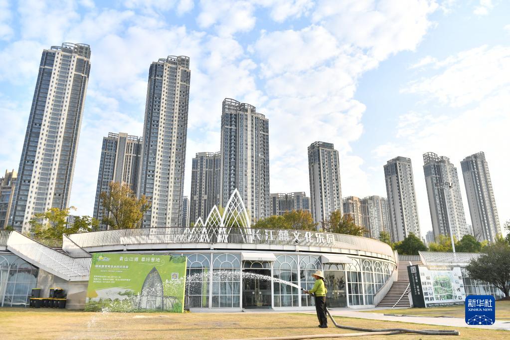 這是11月8日拍攝的武漢市青山江灘的草坪營(yíng)地。