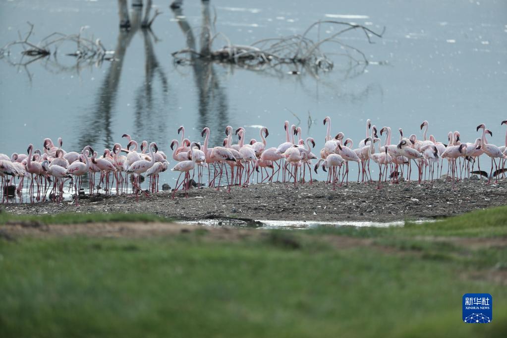 這是11月6日在肯尼亞博戈里亞湖拍攝的火烈鳥(niǎo)。