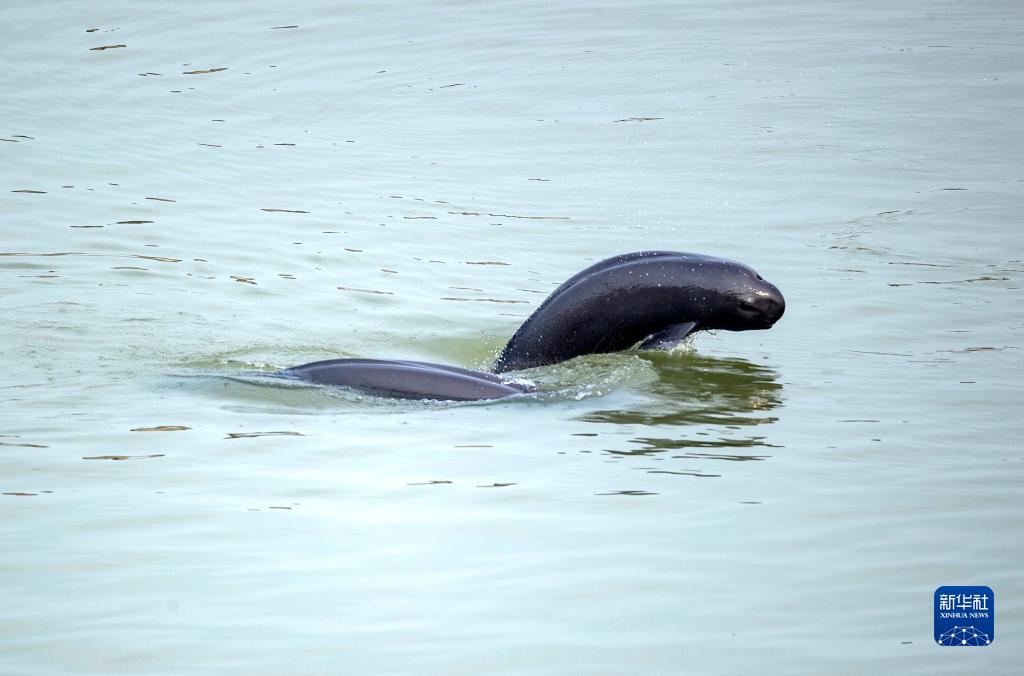 這是11月8日拍攝的長(cháng)江葛洲壩下游水域中的江豚。新華社發(fā)(文振效 攝)