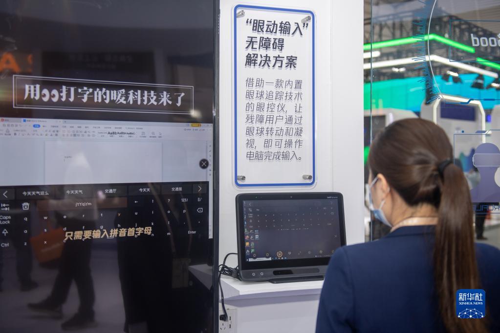 11月10日,觀(guān)眾在騰訊公司展臺體驗“眼動(dòng)輸入”無(wú)障礙解決方案。