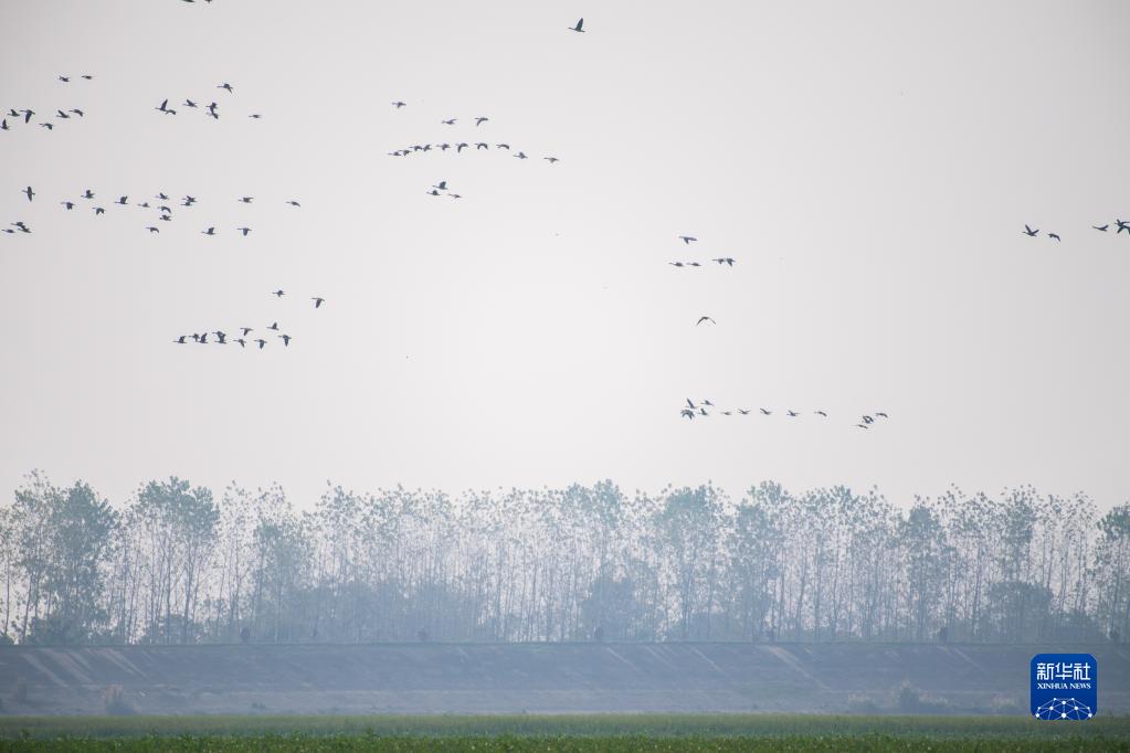 這是11月10日在湖南西洞庭湖濕地上空拍攝的候鳥(niǎo)。