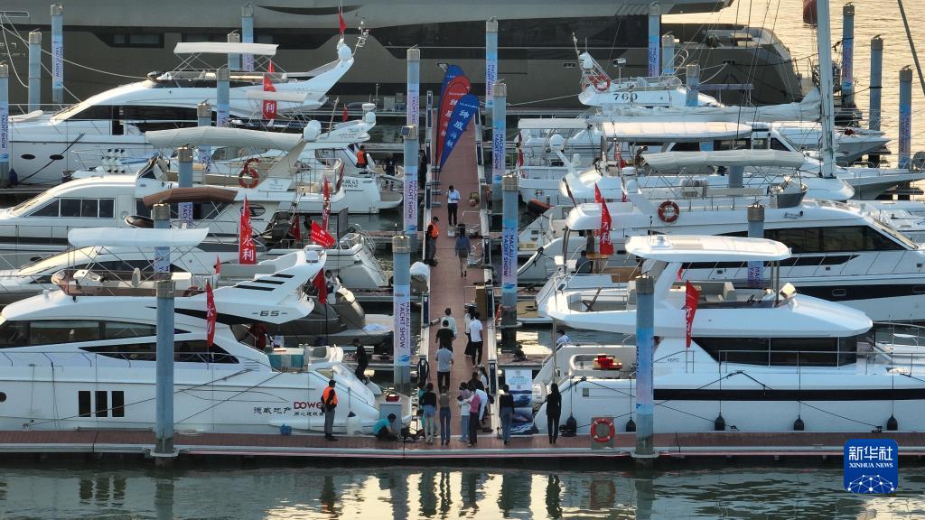 11月10日,與會(huì )者在第十二屆中國(澳門(mén))國際游艇展進(jìn)出口博覽會(huì )上參觀(guān)(無(wú)人機照片)。