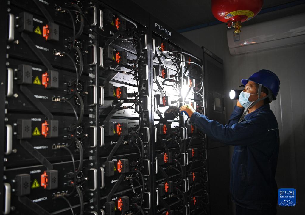 11月11日,國網(wǎng)寧夏電力石嘴山供電公司長(cháng)勝供電所工作人員在檢查能源路由器設備運行狀態(tài)。