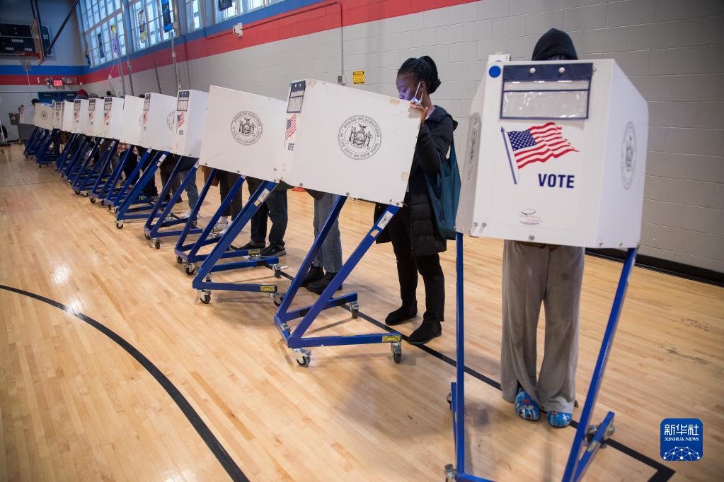 11月8日,選民在美國紐約的一處投票站參加中期選舉投票。
