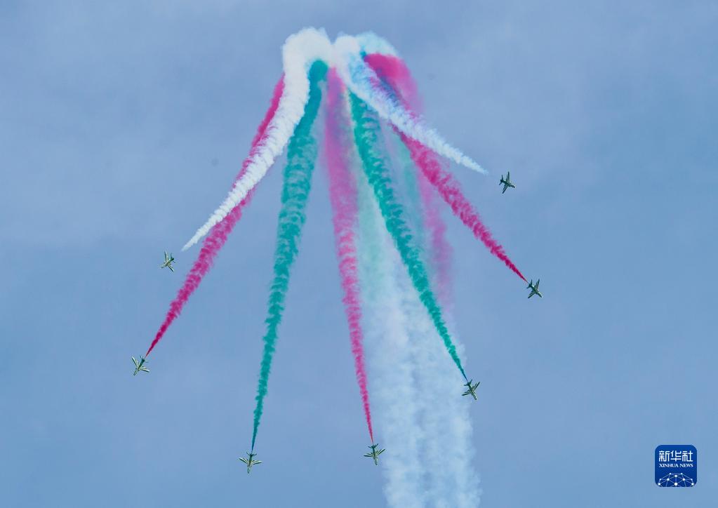 11月5日,沙特空軍獵鷹飛行表演隊在卡塔爾首都多哈進(jìn)行飛行表演。