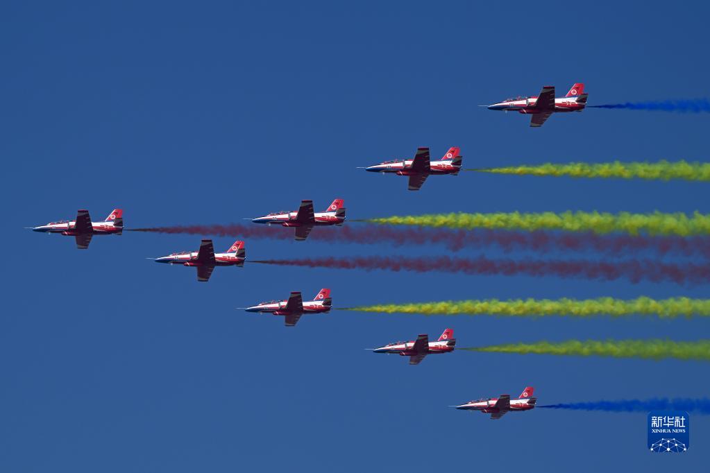 11月13日,第十四屆中國航展閉幕當天,空軍航空大學(xué)“紅鷹”飛行表演隊進(jìn)行飛行表演。