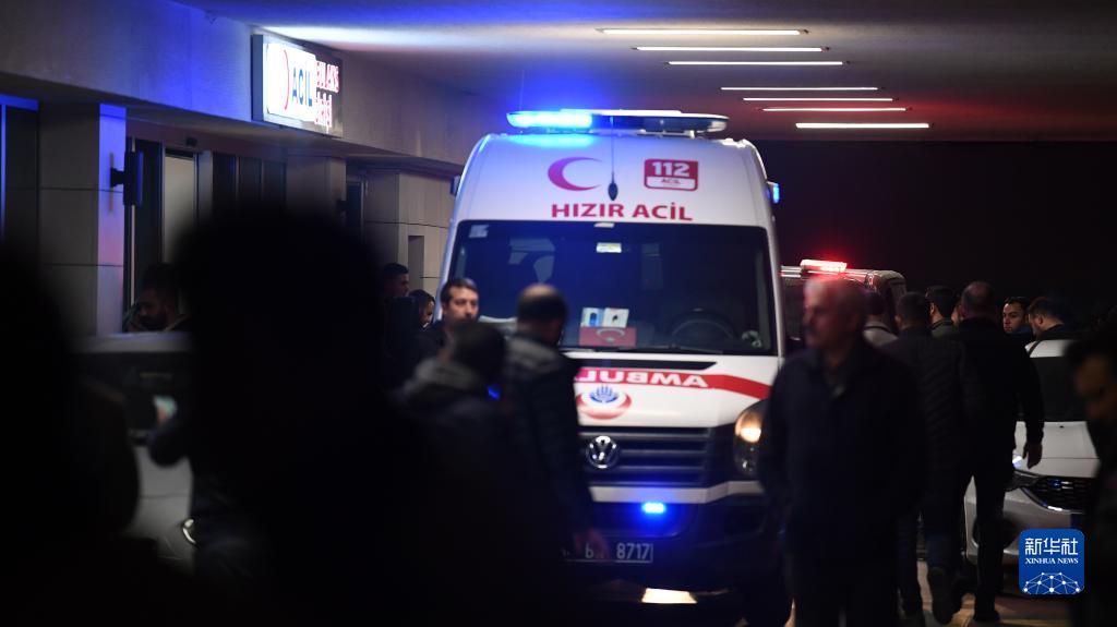 11月13日,一輛救護車(chē)停在土耳其伊斯坦布爾市中心塔克西姆廣場(chǎng)附近一家醫院。