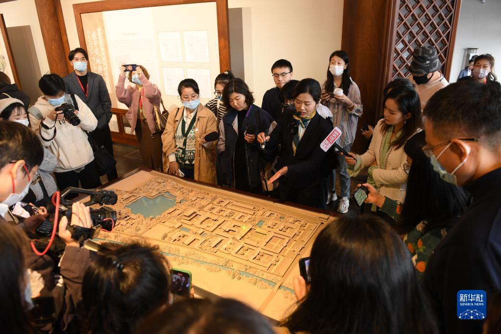 11月14日,講解員向媒體記者介紹德壽宮建筑布局。