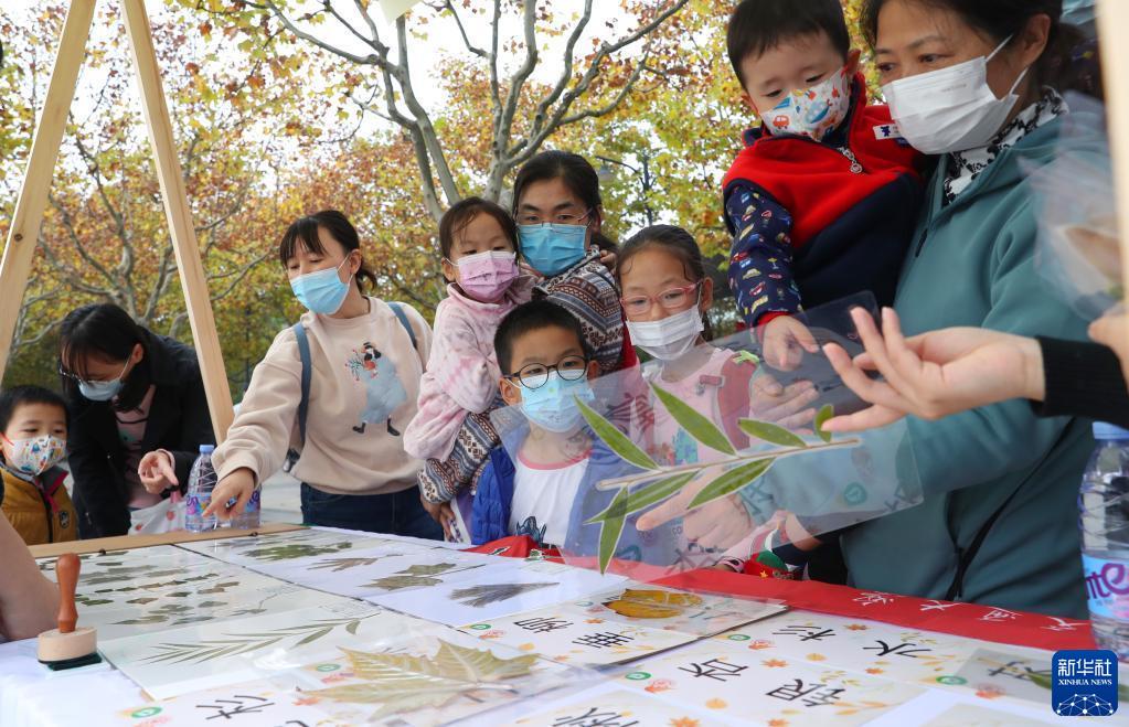 11月20日,小朋友在上海交通大學(xué)的展位前了解城市森林植物的分類(lèi)和特點(diǎn)。
