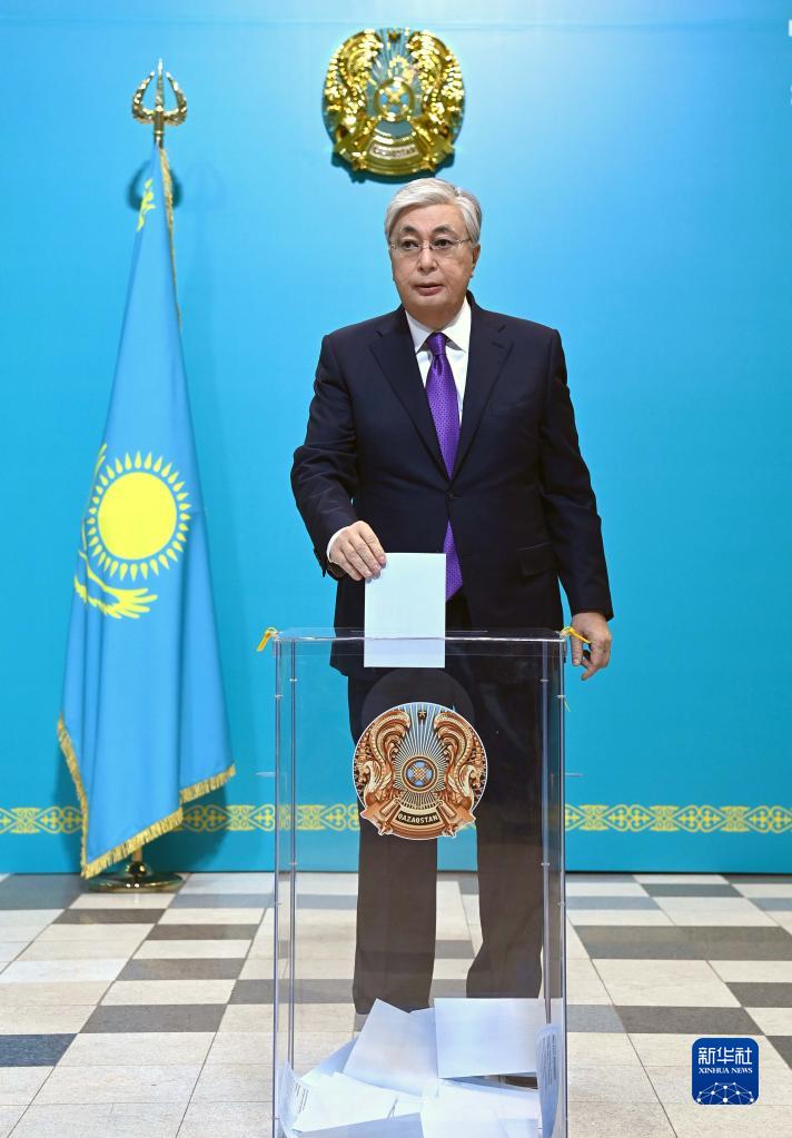 11月20日,哈薩克斯坦總統托卡耶夫在阿斯塔納一處投票站投票。