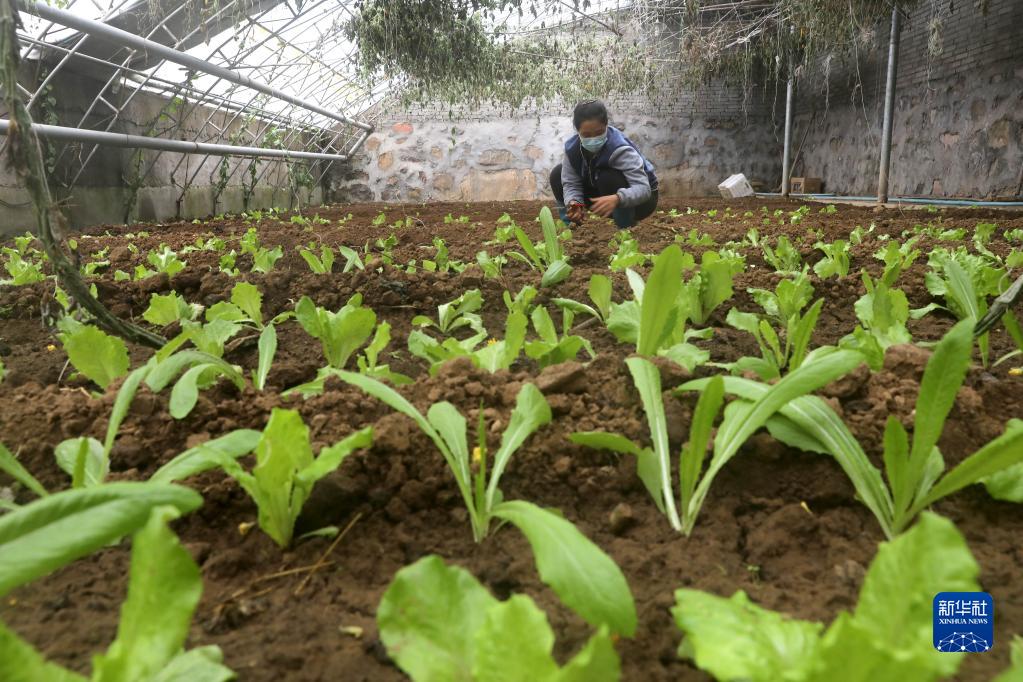 11月21日,在井陘縣測魚(yú)鎮朱會(huì )村的大棚內,農戶(hù)在管護蔬菜。