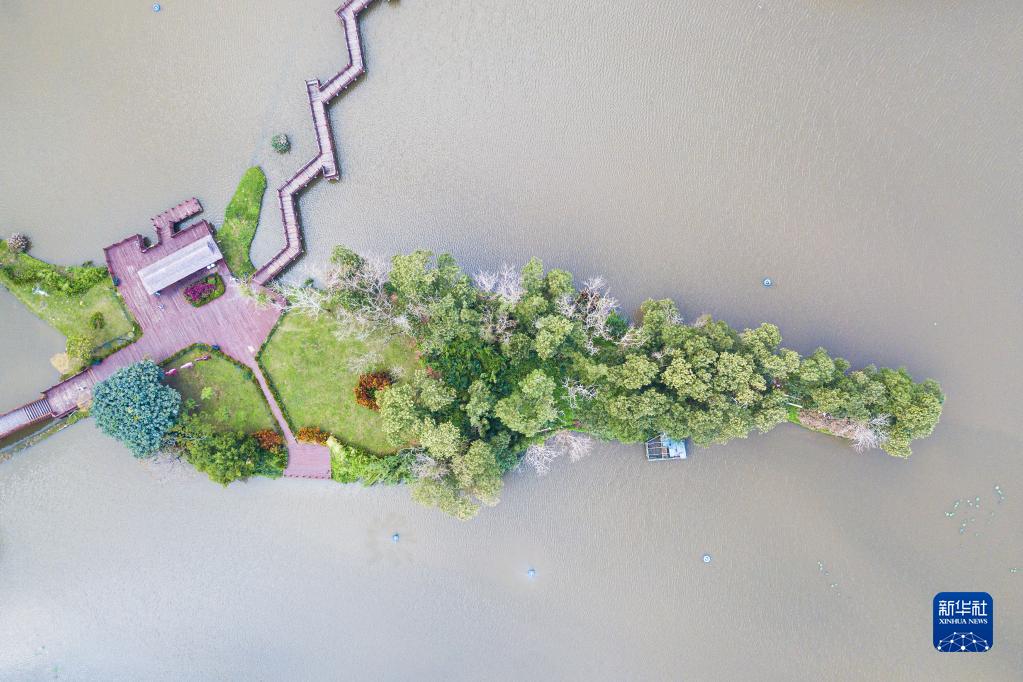 11月20日在海南省屯昌縣拍攝的文贊生態(tài)濕地公園景色(無(wú)人機照片)。