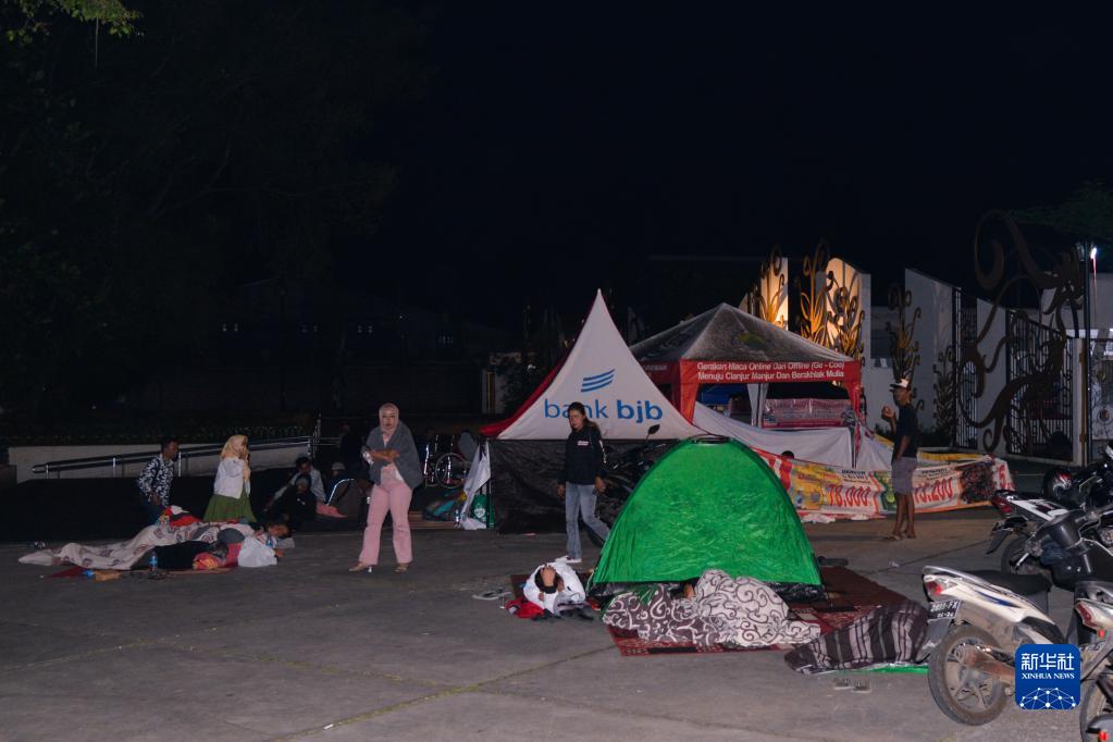 11月22日凌晨,在印度尼西亞西爪哇省展玉地區,受地震影響的人們在戶(hù)外休息。
