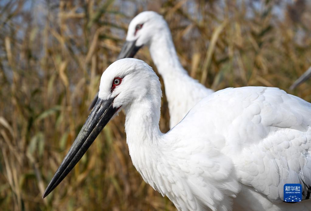 11月23日,被救助的東方白鸛在七里海濕地重返自然。
