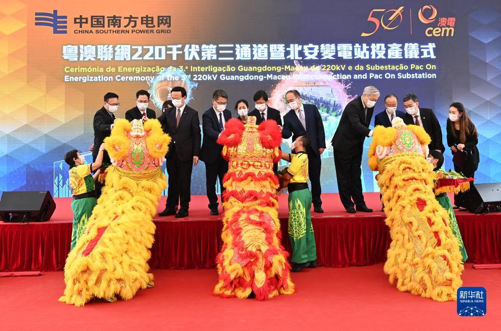 11月25日拍攝的粵澳聯(lián)網(wǎng)220千伏第三通道正式投產(chǎn)儀式現場(chǎng)。