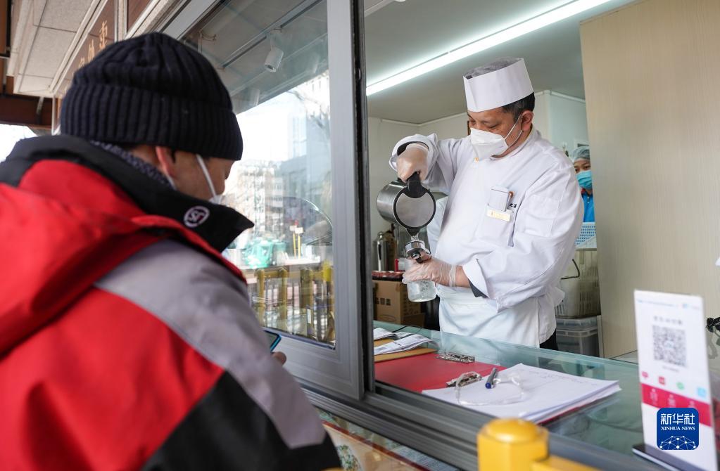 寒潮襲來(lái),北京中國職工之家飯店設立了“小哥驛站”,專(zhuān)門(mén)為外賣(mài)和快遞騎手們提供售價(jià)10元的盒飯,并免費為“小哥”們提供熱水,讓他們在冬日里感受到關(guān)愛(ài)和溫暖。
