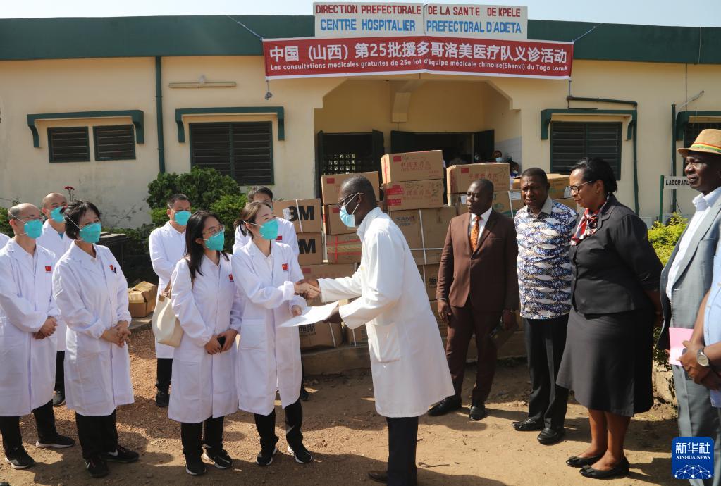 11月30日,中國第25批援多哥醫療隊向多哥佩萊省阿代塔鎮衛生所捐贈醫療物資。