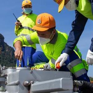 12月1日,在老撾瑯勃拉邦,中老鐵路雙方員工共同維護線(xiàn)路。