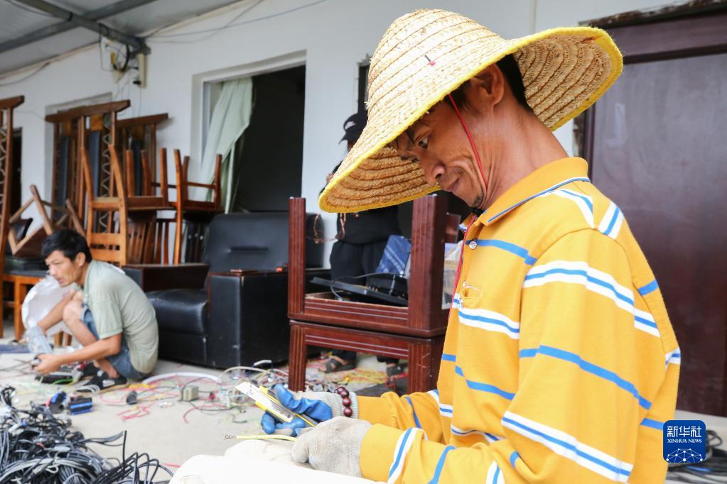12月1日,海南殘服再生資源有限公司員工在處理回收的舊物。