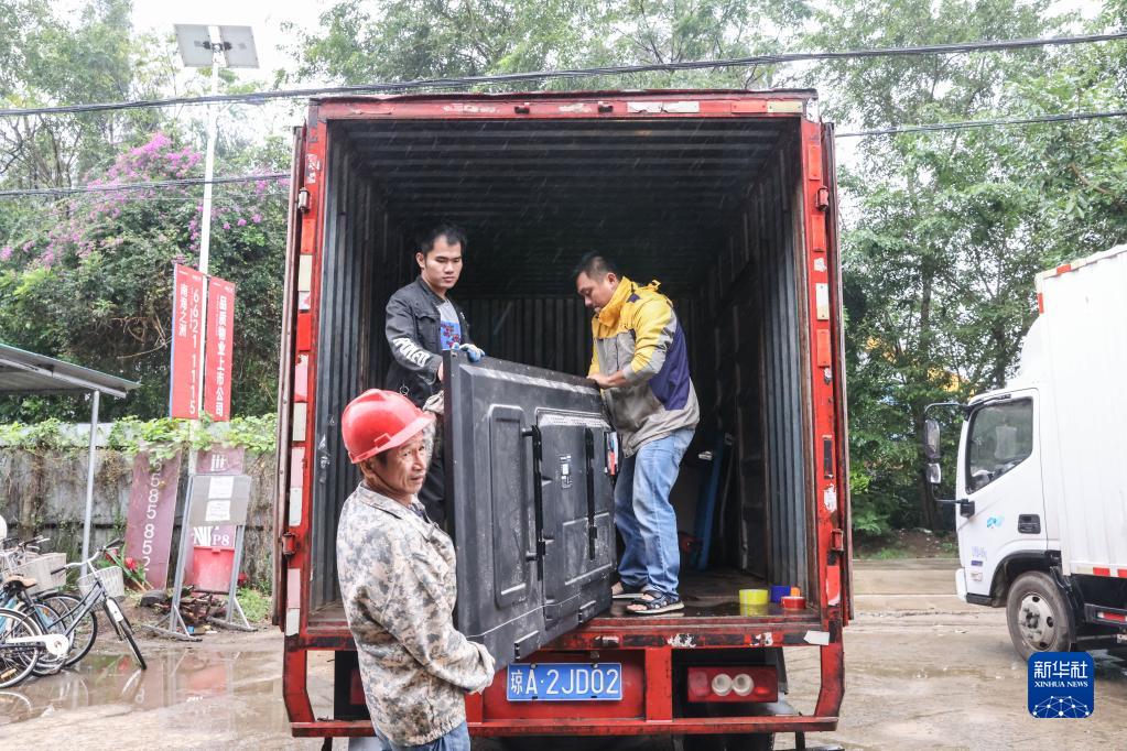 12月1日,海南殘服再生資源有限公司員工和物流人員將舊物搬上貨車(chē)。